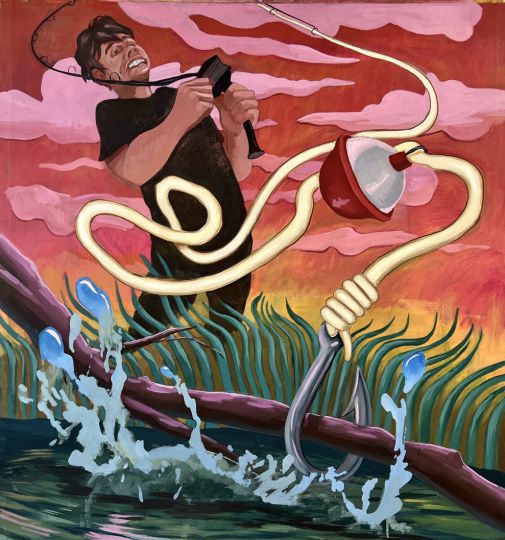 In her oeuvres for A Wild Weed, Ceirra Evans, who was born and raised in Eastern Kentucky, in the Appalachian foothills, explores personal mythologies, local folklore, and realities of everyday life in her native surroundings. All these is visualised with humour in her paintings, that present a constellation of feelings, queerness, images, experiences, beliefs, concerns, and inspirations.